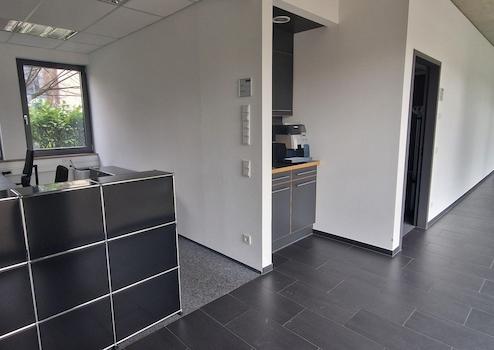 Die Böden sind mit hochwertigem Teppich und Fliesen ausgeführt und schaffen eine professionelle, moderne Atmosphäre. Eine vollausgestattete Küche im Erdgeschoss sowie eine zusätzliche Teeküche im Erdgeschoss und im 1. OG stehen Ihnen zur Verfügung und ergänzen das Angebot optimal. An den Aufenthaltsraum im Erdgeschoss schließt eine Terrasse im begrünten Garten an.