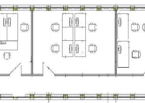 Die im Grundriss eingezeichneten Arbeitsplätze sind nur als Beispiel gedacht. Die Einteilung kann individuell erfolgen.