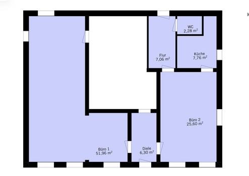 Das Büro wird über einen gemeinschaftlich genutzten Flur betreten. Es handelt sich um zwei verbundene Räume, welche vor 3 Jahren renoviert wurden.