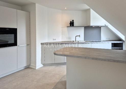 Die Fläche im 6.OG hat eine Dachterrasse und ein Duschbad sowie eine neue Einbauküche.