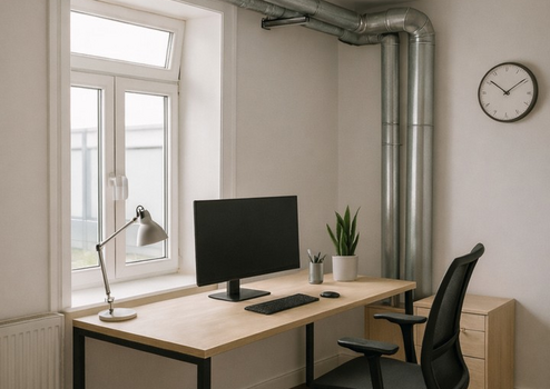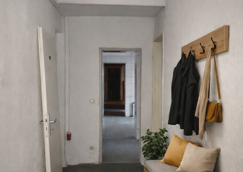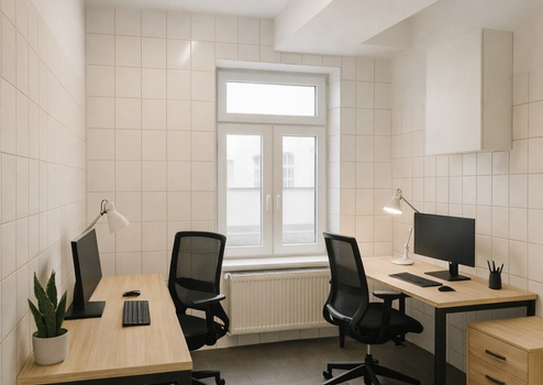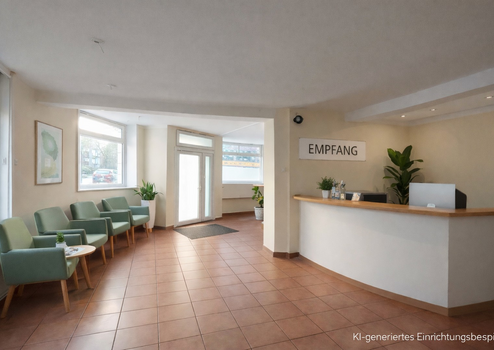 Über den Eingangsbereich ist zudem der hintere Teil der Gewerbefläche erreichbar. Dieser Bereich bietet umfangreiche Abstell- und Lagerflächen, beispielsweise für Arbeits- oder Kursmaterialien, sowie separate WC-Räume für Personal. Darüber hinaus stehen hier mehrere großzügige Zimmer zur Verfügung, die sich als Büro- oder Verwaltungsräume nutzen lassen. Der hintere Bereich kann – je nach Nutzungskonzept und in Abstimmung mit der Eigentümerin – weiter aufgewertet und individuell angepasst werden. KI-generierte Einrichtungsbeispiele für die Räume finden sich als Inspiration in den Anzeigebildern des Inserats.