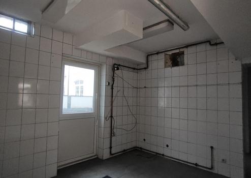 Aktuell gliedert sich die Einheit in einen großzügigen, gefliesten Eingangsbereich, von dem aus ein weiterer, ebenfalls gefliester Hauptraum erschlossen wird. Dieser eignet sich aufgrund seiner Größe und Offenheit hervorragend für Gruppennutzungen, etwa für Therapie- oder Coachinggespräche, Yoga- oder Pilateskurse, Schulungen oder auch Verkaufsgespräche.