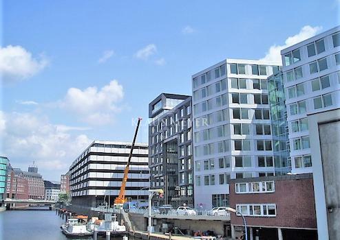 Repräsentativer Büroneubau mit spektakulärem Blick auf einen der ältesten Hafenplätze Hamburgs, dem Binnenhafen gegenüber der Speicherstadt und der Kehrwiederspitze, direkt am Fleet gelegen: