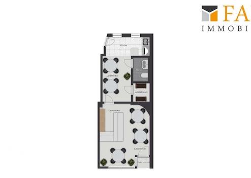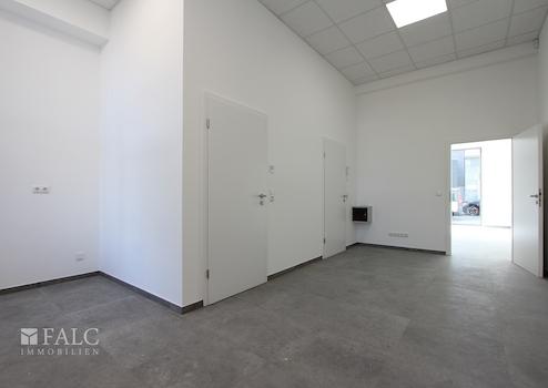 Eine Fußbodenheizung mit Einzelraumsteuerung sorgt für eine gleichmäßige Temperierung der Fläche. Die professionelle Rasterdecke mit integrierten LED-Leuchten garantiert eine schattenfreie Arbeits- & Verkaufsatmosphäre. Eine separate Beleuchtung im Schaufenster- und Eingangsbereich setzt Ihr Unternehmen auch in den Abendstunden wirkungsvoll in Szene.