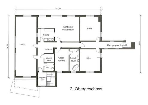 * Obere Büroetage, durch Übergang direkt mit der Logistik verbunden