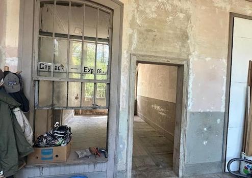 Viel erhaltenswertes, wie z.B.die Originalinnentüren, das Bahnhofschild, der alte Fahrplan, Ersatzschindeln etc. ist vorhanden.