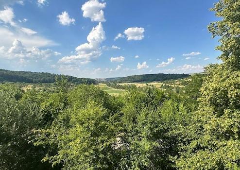 Oberhalb der Gemeinde Schafhausen, an den ehemaligen, nun still gelegten Gleisen der Schwarzwaldbahn mit einmaligen Blick über das Würmtal bis Weil der Stadt.
