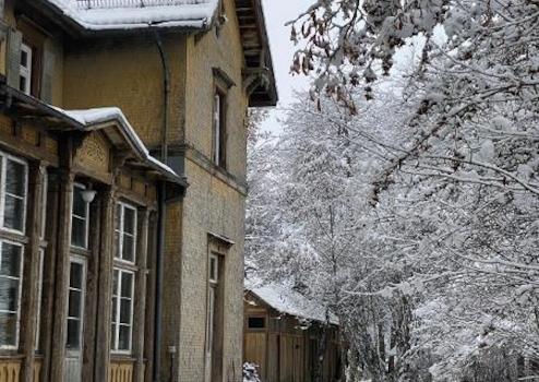 Hier haben Sie die Möglichkeit ein einzigartiges Anwesen zu erwerben. Der denkmalgeschützte, mit Schindeln verkleidete Bahnhof aus der Epoche des Historismus, bereits mit etlichen Elementen des frühen Jugendstils atmet in jeder Ecke Geschichte und Geschichten aus.