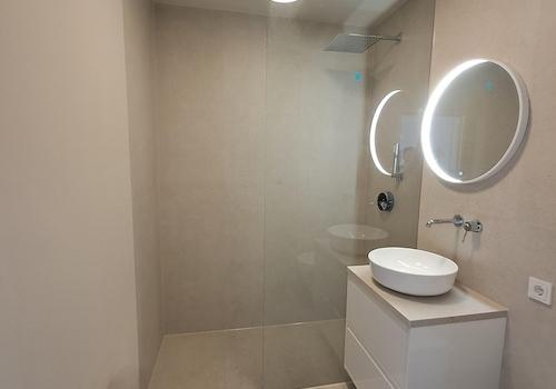 Hochwertige Ausstattung mit Fliesen und moderner LED-Beleuchtung