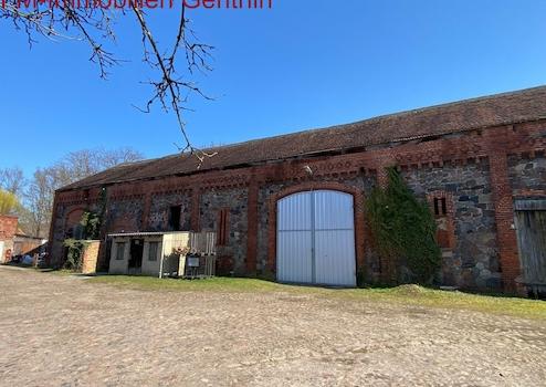 Das Gebäude erstreckt sich über eine Grundfläche von ca. 450 m² und präsentiert sich als massives, ortstypisches Bauwerk mit charaktervoller Ausstrahlung. Die Kombination aus Feldsteinmauerwerk und Ziegeln verleiht der Scheune ihre markante, ursprüngliche Optik und zeugt von der soliden Bauweise vergangener Zeiten.