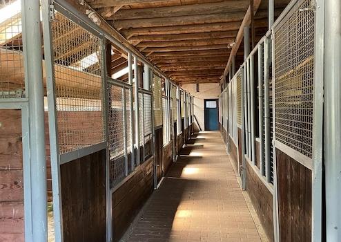 Hinter dem Gebäude befindet sich ein Paddock, der über ein großes Tor auf der Rückseite der Halle und über eine eigene Zuwegung erreichbar ist.