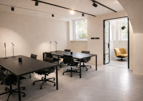 Maßanfertigungen, hochwertige Materialien und ein ruhiges, repräsentatives Raumgefühl schaffen eine außergewöhnliche Arbeitsumgebung direkt am Landwehrkanal.
