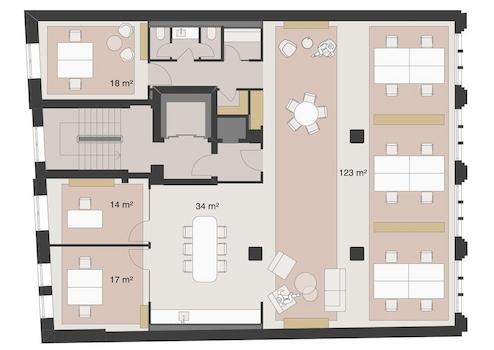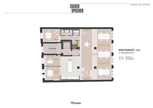 Bürofläche im Zuckerspeicher (2. Etage, 225 m², 17 Arbeitsplätze)