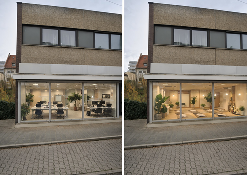 150 m² ebenerdige Gewerbefläche | ca. 40 m² Nebenfläche | große Schaufensterfront | flexible Nutzung | Ausbau nach Mieterwunsch | Visualisierungen anbei |