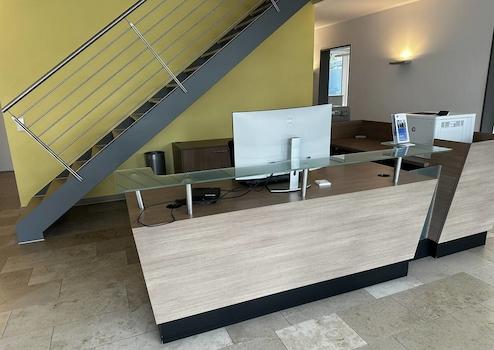 Diese exklusive Büroimmobilie in Warendorf vereint eine zentrumsnahe Lage mit einem erstklassigen Arbeitsumfeld, das durch professionellen Stil und eine gepflegte Atmosphäre besticht. Beim Betreten beeindruckt ein großzügiger Eingangsbereich mit stilvollem Empfangstresen, der die hochwertige Qualität des Gebäudes unterstreicht und bei Kunden sowie Geschäftspartnern einen bleibenden ersten Eindruck hinterlässt.