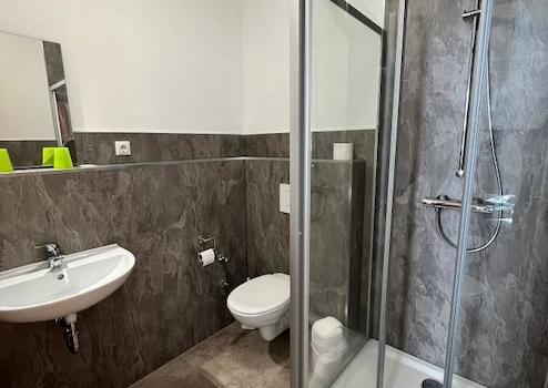 2. Obergeschoss (OG) ca. 268 m² Im OG finden Sie 8 Doppelzimmer inkl. Bad mit WC, Dusche und Waschbecken 2 Appartements (4 Personen) inkl. Bad mit WC, Dusche, Waschbecken