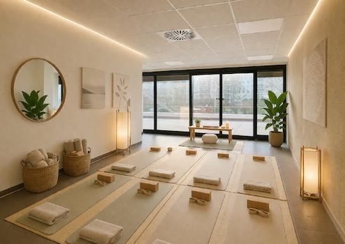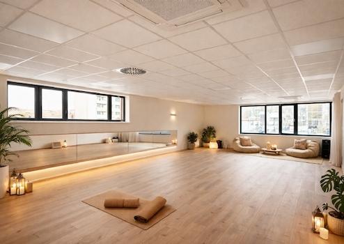 Die helle und großzügig geschnittene Einheit eignet sich ideal für ein Bewegungsstudio, wie z. B. Yoga-, Tanz- oder Fitnesskurse, und lässt sich flexibel an individuelle Nutzungskonzepte anpassen.