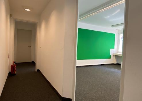 Die Büros sind praktisch geschnitten und durch die großen Fensterfronten gut belichtet. Alle Räumlichkeiten sind vom geräumigen Flur aus zu erreichen.