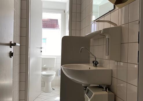 - Sanitäranlage weiß gefliest
