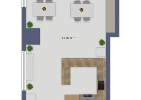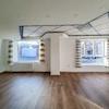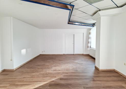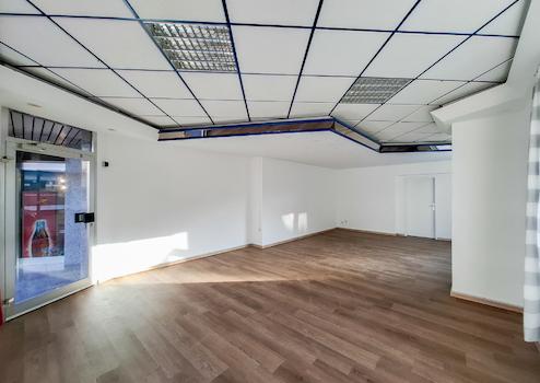 Die Innenausstattung ist modern und funktional gehalten: In beiden Räumen wurde ein robuster und pflegeleichter Laminatboden in heller Holzoptik verlegt, der eine freundliche Atmosphäre schafft. Im Hauptraum sorgt eine Kombination aus zwei unterschiedlichen Deckenlösungen für eine optimale Ausleuchtung: Neben einer klassischen Decke mit modernen LED-Einbaustrahlern ist im selben Raum zusätzlich ein Bereich mit abgehängter Rasterdecke und integrierten Rasterleuchten vorhanden. Diese Kombination gewährleistet eine gleichmäßige und angenehme Beleuchtung der gesamten Fläche. Ergänzend sind moderne, weiße Heizkörper installiert, die sich optisch dezent in das Gesamtbild einfügen.