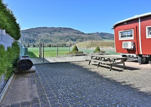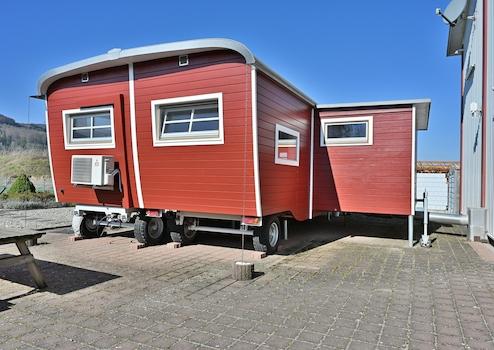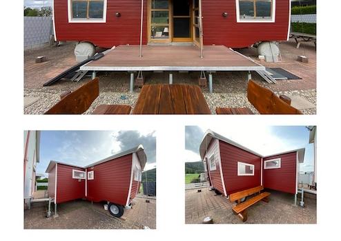 Hinter dem Gebäude befindet sich ein TinyHouse.