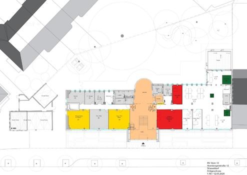 HOM12 bietet zahlreiche Besonderheiten, die es zu einer ausgezeichneten Wahl machen. Moderne Räumlichkeiten verfügen über großzügige Fensterflächen, die eine optimale Belichtung durch natürliches Tageslicht gewährleisten. Diese Fenster schaffen eine einladende, helle Arbeitsatmosphäre und bieten gleichzeitig einen Ausblick auf den umliegenden Garten.