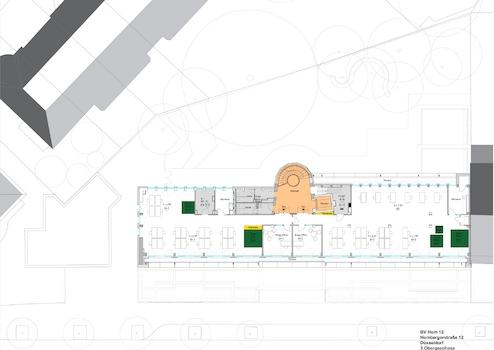 Der Garten erstreckt sich über eine Fläche von 700 m² und steht allen Nutzern zur gemeinsamen Nutzung zur Verfügung. Zusätzlich haben sechs von zehn Mietbereichen direkten Zugang zu Freiflächen wie Loggien, Dachterrassen oder dem Garten. Diese Bereiche bieten die Möglichkeit für Pausen oder auch das Arbeiten im Freien.