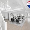 Die Küche öffnet sich zu einer weitläufigen Bürofläche, die vielfältige Nutzungsmöglichkeiten bietet – vom offenen Arbeitsbereich über Empfang bis hin zu Ausstellungs- oder Beratungsflächen. Ein separates, angrenzendes Büro schafft zusätzlichen Raum für konzentriertes Arbeiten oder vertrauliche Gespräche.