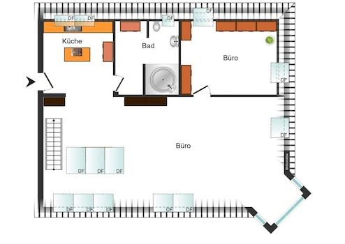 Diese Einheit eignet sich ideal für Agenturen, Start-ups, Kanzleien, Praxen oder kreative Dienstleister, die Wert auf ein inspirierendes Arbeitsumfeld mit moderner Ausstattung und besonderem Charakter legen.