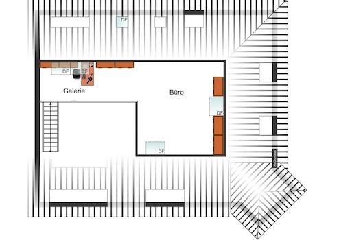 Diese attraktive Maisonette-Gewerbeeinheit im 2. Obergeschoss überzeugt durch ihre offene Architektur und ein durchdachtes Raumkonzept auf zwei Ebenen. Zahlreiche Fenster sorgen den ganzen Tag über für eine helle, angenehme Arbeitsatmosphäre und verleihen den Räumen eine freundliche Ausstrahlung.