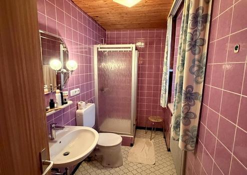 Gästezimmer: Die Gästezimmer sind funktional eingerichtet. Viele Zimmer verfügen über eigene Duschbäder/WCs. Mehrere Zimmer mit Balkonzugang. Die Möbelierung der Zimmer ist zum großen Teil aus hochwertigen vom Tischler angefertigten Möbel gefertigt. Ein großer Teil der Zimmer ist mit Fußbodenheizung und hochwertiger Badkeramik und sowie hochwertigen Armaturen ausgestattet. Auch wenn die Ausstattung zum Teil den Charme der achtiger Jahre wiederspiegelt, lässt sich hier mit ein paar Handgriffen (z.B. Austausch der Duschwände in Klarglas, moderne Vorhänge, schöne Bettwäsche usw...) , eine moderne Optik zaubern.