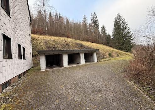 Parken: Großflächiger, befestigter Parkplatz direkt am Objekt. 3 großzügige Garagen