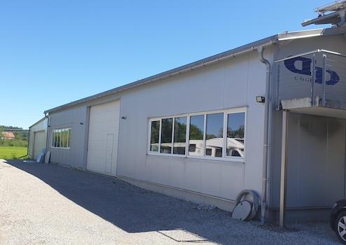 Eine schöne Lager und Produktionshalle, mit Schwenkkran, Aufenthaltsraum, WC, Küche, Leitstand und großem, elektrischem Rolltor.