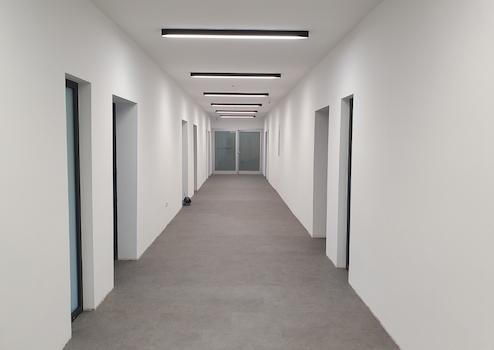 Das Gebäude ist bereits teilweise vermietet, und es wird weiter ausgebaut. Im EG entstehen weitere große Büroräume zwischen 26 qm und 55 qm.