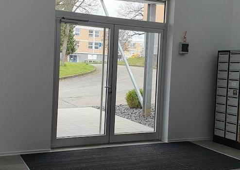 Über einen repräsentativen Eingang sowie einen Notausgang erreicht man die Büroräume.