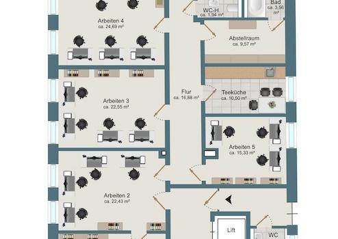 - ca. 150 m² helle und freundliche Räume im 1. Obergeschoss