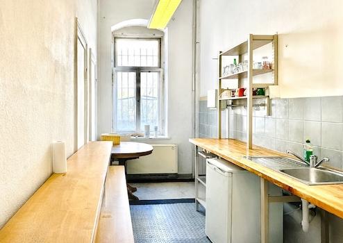 Ein Lager sowie eine Küche sind ebenfalls integriert.