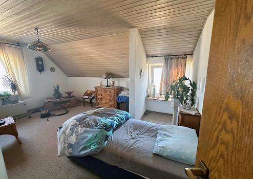 Dachgeschoss (vorne, vermietet, Wohnfläche ca. 47 m²): Separater Eingangsbereich, Wohnzimmer, Schlafzimmer, Küche, Bad - Eine Raumspartreppe führt auf den Speicher, ideal zum Lagern und Abstellen. Die Jahresmieteinnahme beträgt ca. 5.400,00 € zzgl. Nebenkosten.
