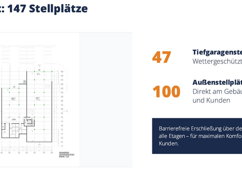 ✔ 147 Stellplätze direkt am Objekt