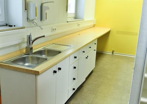 Für das Personal befindet sich hinter dem Empfangstresen ein separater Pausenraum mit einer Einbauküche sowie ein separates Personal-WC.
