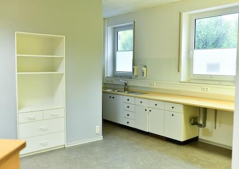 Einbauküche, Gäste-WC, Barrierefrei, Laminat, Teppichboden, Fliesen