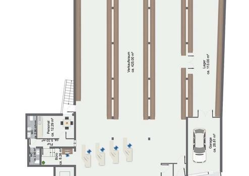 Der Verkaufsbereich wird derzeit vom Eigentümer selbst genutzt, kann jedoch nach Absprache frei übergeben werden.