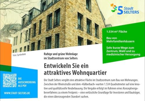 Die Stadt Selters vergibt eine attraktive Fläche im Stadtzentrum zum Bau von Wohnungen. Zwischen der Rheinstraße und dem "Kälberbach" warten 1.534 Quadratmeter auf eine kreative und qualitätsvolle Neubebauung. Die ...
