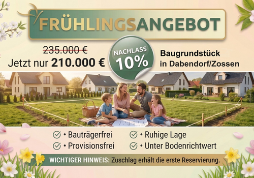 Frühlingsangebot – Nachlass 10%: Bauträgerfreies Baugrundstück unter Bodenrichtwert in Dabendorf