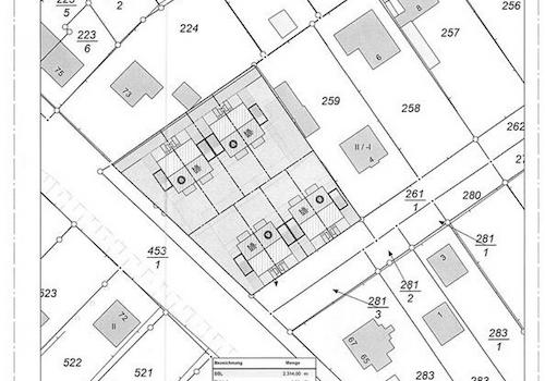 2318 qm Baugrund mitten im Wohngebiet, Eckgrundstück Nr.:260 auch mit mehreren Häusern bebaubar, das Gesamtgrundstück ist erschlossen, siehe mögliche Aufteilungen des Grundstückes: 4 Einzelhäuser oder 8 Doppelhaushälfte ...