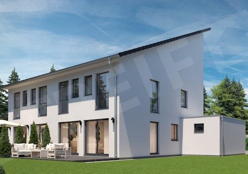 STREIF-Doppelhausentwurf Die Architektur dieses Doppelhauses mit einem eleganten Pultdach strahlt zeitlose Modernität aus. Die Grundrisse sind so konzipiert, dass großzügige und komfortable Räume entstehen. Der offene ...
