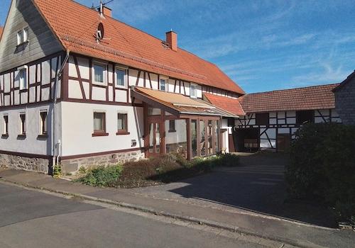 Fachwerkhaus mit Nebengebäude Garten und Brunnen