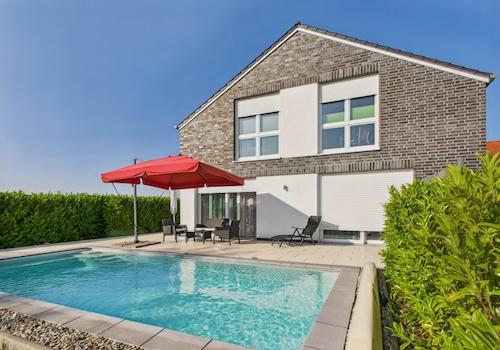 Modernes Einfamilienhaus mit Pool, Designküche & Energieeffizienzklasse A+ Ihr modern möbliertes Zuhause mit Wohlfühlgarantie – sofort einziehen und genießen! Dieses neuwertige Einfamilienhaus (Baujahr 2020) der ...