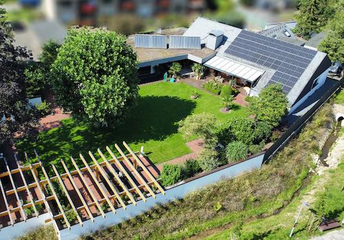 Einfamilienhaus mit zwei separaten Wohneinheiten, teilweise unterkellert, sowie einem Anbau, insgesamt 352 Quadratmeter Wohnfläche. Zusätzlich gibt es einen Garagenkomplex mit fünf Garagen, einer Dachterrasse und einem ...