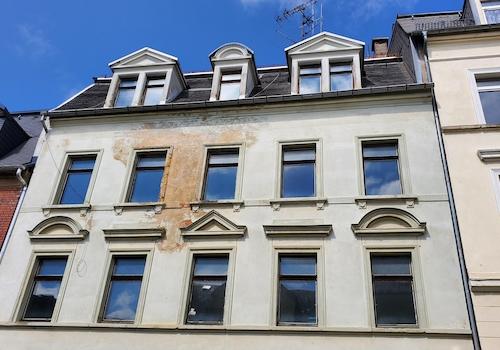 Das leerstehende und komplett sanierungsbedürftige Mehrfamilienhaus verfügt im Erdgeschoss über eine 2-Raum-Wohnung und im 1. Obergeschoss, 2. Obergeschoss und Dachgeschoss über je eine 3-Raum-Wohnung mit hohen, hellen ...